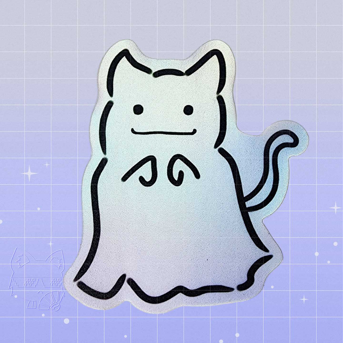 This ghost cat sticker goes great on your laptop, water bottle or sticker collection!