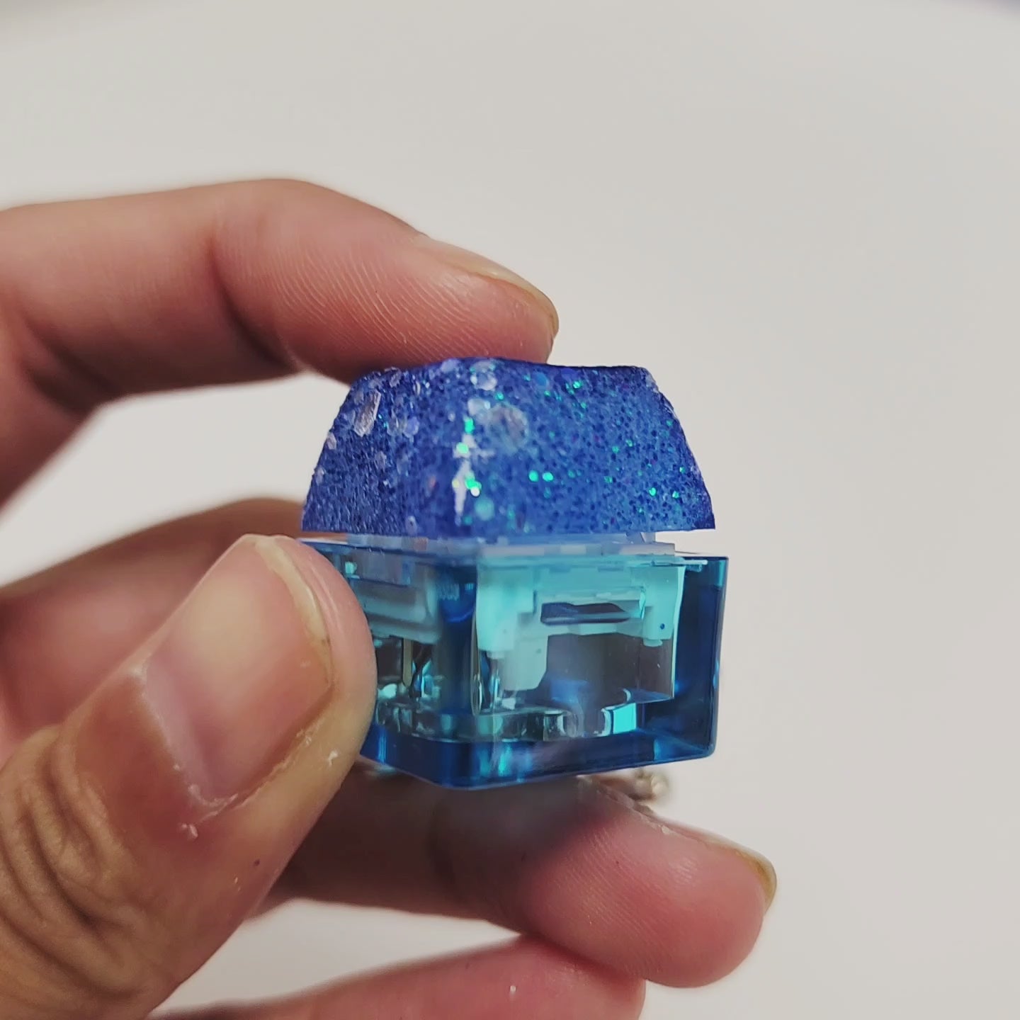 FEATURES: Hand-glittered Blue glitter keycap with clear blue housing and blue switches